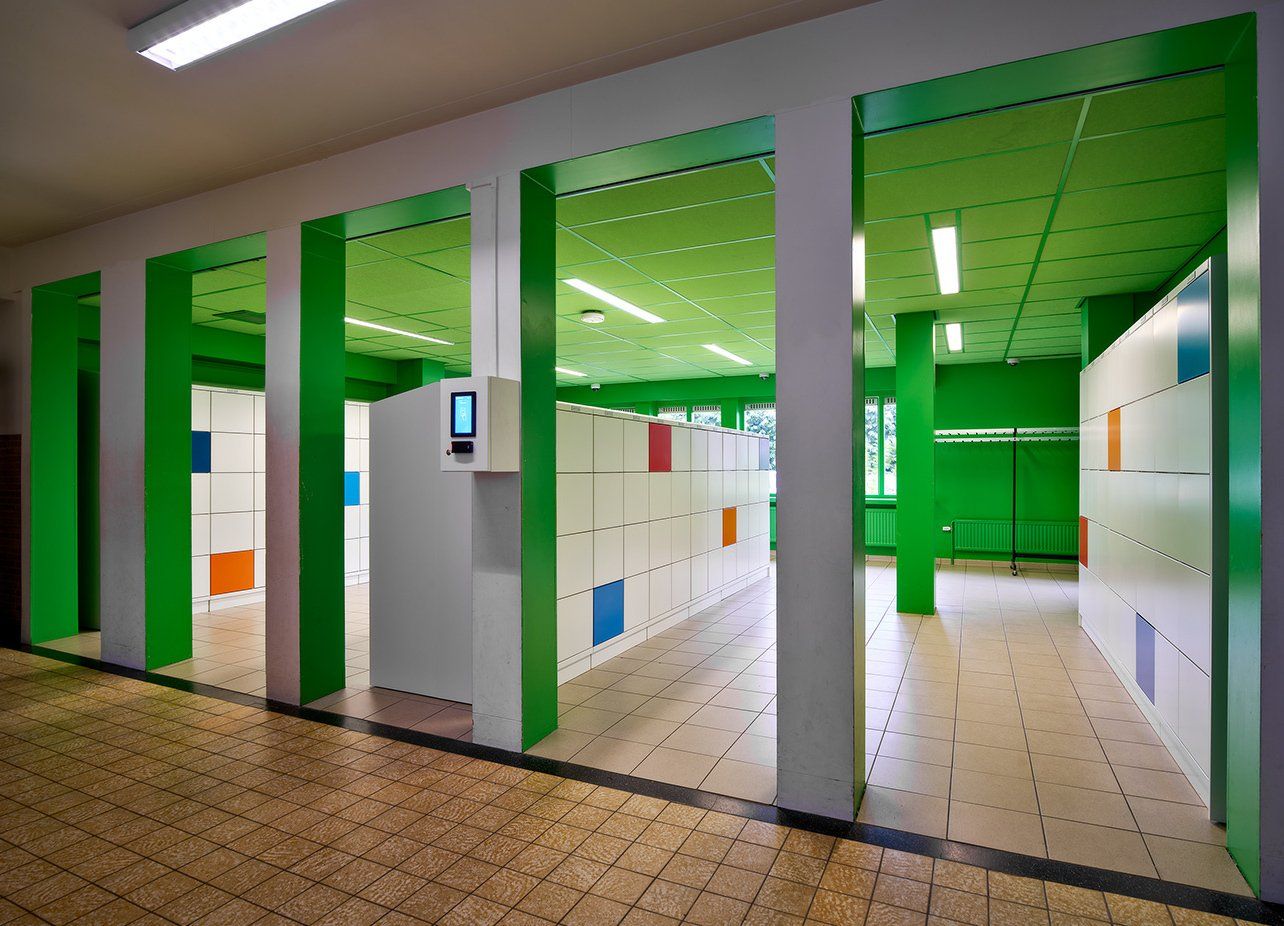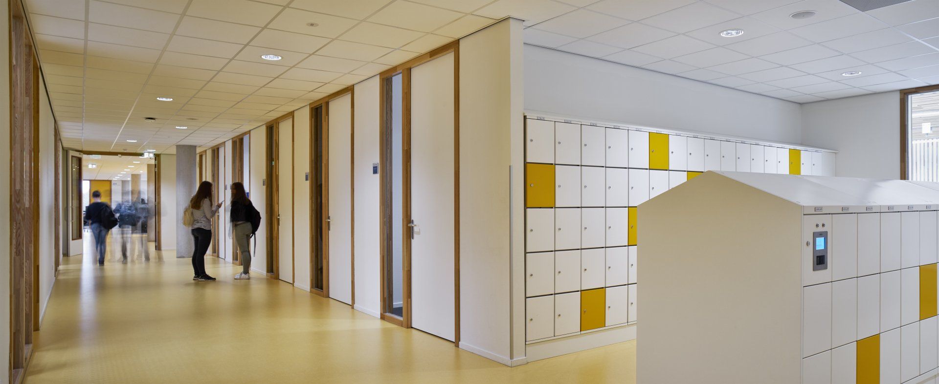 Vandaalbestendige, esthetisch vormgegeven schoollockers met online beheersysteem, in combinatie met gerevitaliseerde lockers